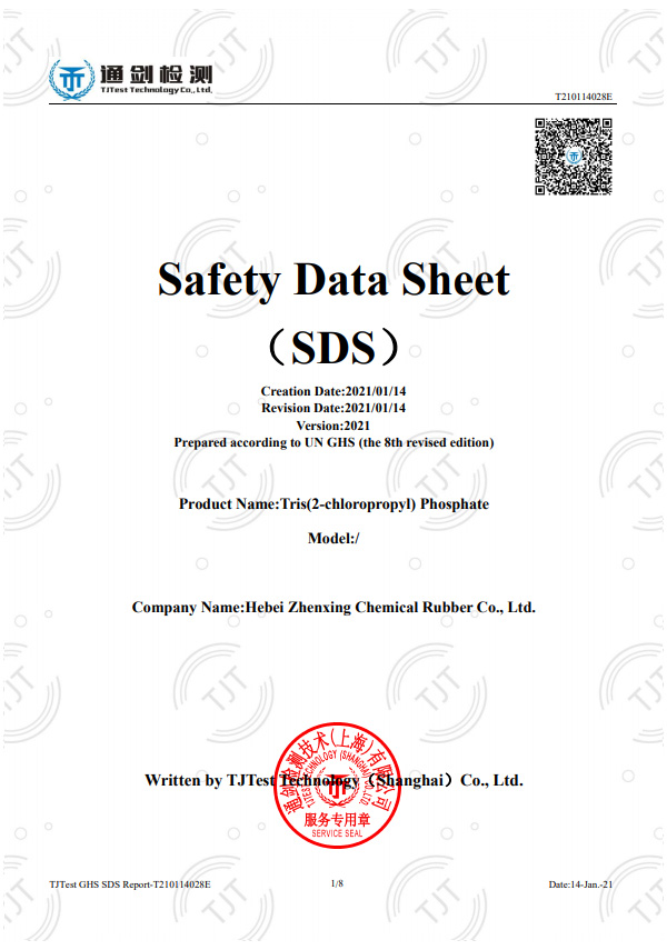 三:純凈的三氯丙基磷酸酯為無色或淡黃色油狀透明液體,無味.與一般有機溶劑相溶,不溶于水和脂肪族烴,且水解穩定性好,在堿性溶液中有小量分解.本品無毒,無明顯腐蝕性.
